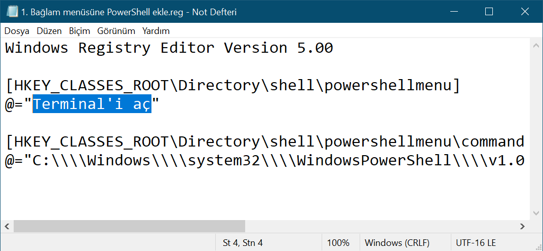 Bağlam menüsüne PowerShell ekleme - Tek tıkla kolay kurulum