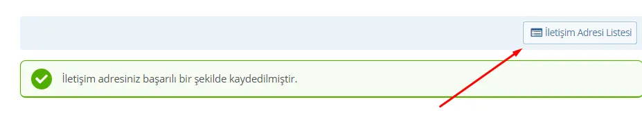 - Devamında açılan sayfada sağ üst kısımda bulunan "İletişim Adresi Listele" butonuna tıklıyoruz. Bu kısımda daha önceden eklediğiniz iletişim adresleriniz yer alıyor.
