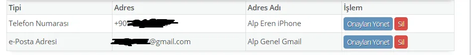 - İster telefon numarası girip istenmeyen sms gönderilerini engelleyin isterseniz de email adresi ekleyip istenmeyen spam email gönderilerini engelleyin karar size kalmış. İşlem kısmında bulunan "Onayları Yönet" tuşuna basıyoruz.