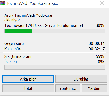 - Parola' yı verdikte sonra Tamam > Tamam' a tıklıyoruz. Alt kısımdaki gibi dosyanızın büyüklüğüne göre beklersiniz. Rar' dan çıkartırken de beklerseniz.