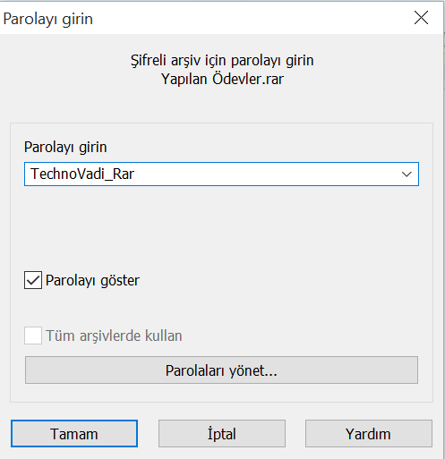 3-) Parola kutusuna dilediğiniz parola yazıp Tamam butonuna basın.